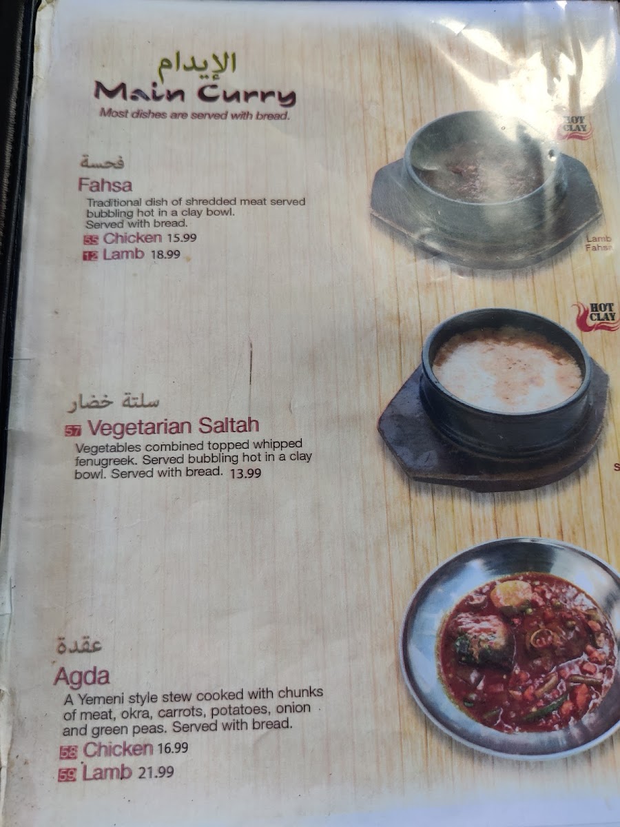 “ outdated place for Yemeni food Old tables. Nothing charming, BUT the food was a surprise good. Full of flavors. My only criticism for the kitchen chef, minimize oil consumption in cooking please. ”